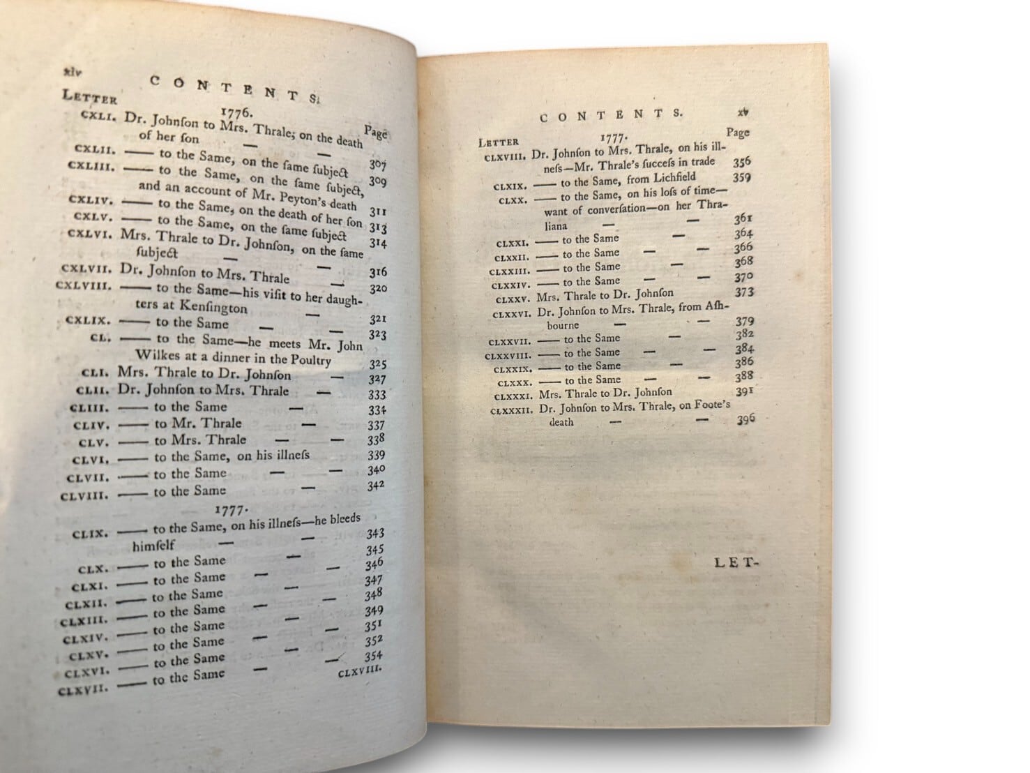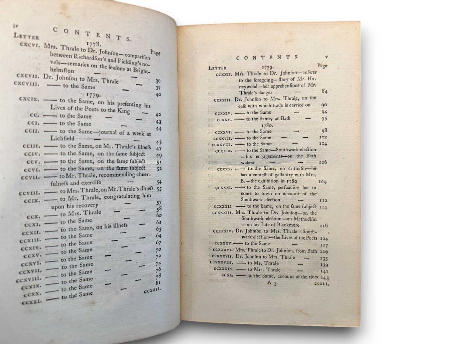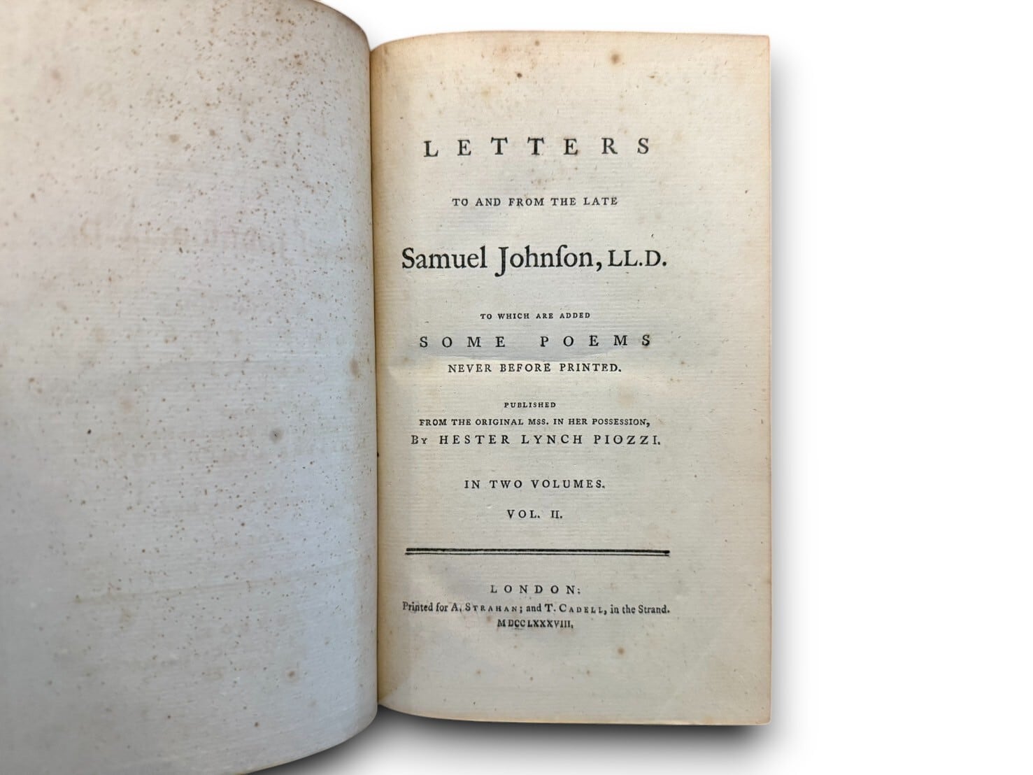 イングランドの文学者、サミュエル・ジョンソン(1709-1784)と彼の親友で、快活で知的な社交界の女主人ヘスター・スレイル(ピオッツィ)との間で交わされた、生き生きとした啓発的な書簡集。豪華モロッコ装丁。1788年刊行貴重な初版。