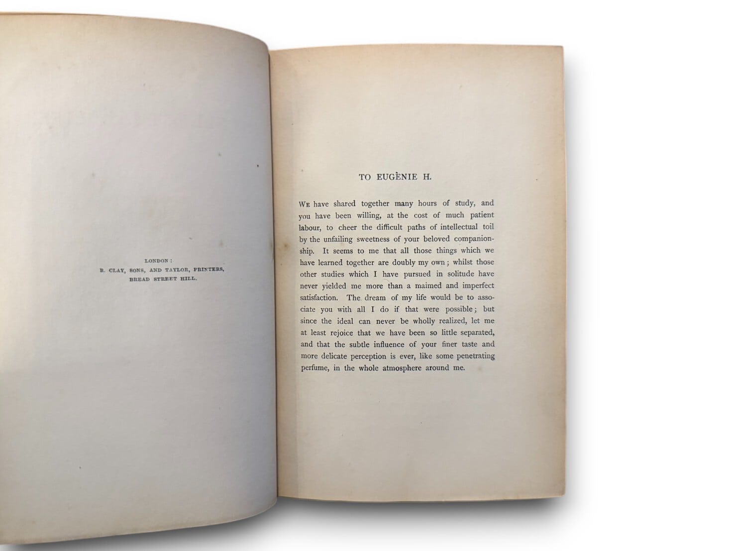 英国有数の文筆家として知られるフィリップ・ギルバート・ハマトン(1834-1894)の代表作『知的生活』。本作はヴィクトリア朝イギリスを生きた偉大な教養人の代表的人生論。 手紙の形をかり、 知的生活のための心得を語り、 平常人の平常生活における内的充実と知的向上に対する静かな省察と工夫を説いている。口絵にフランスの版画家、レオポール・フラマンによるレオナルド・ダ・ヴィンチの肖像画収録。全革装。非常に貴重な1873年刊行の初版。