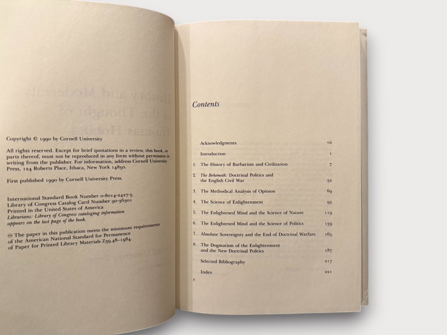 【SFF055】【FIRST EDITION】History and Modernity in the Thought of Thomas Hobbes(1990) /Robert P. Kraynak