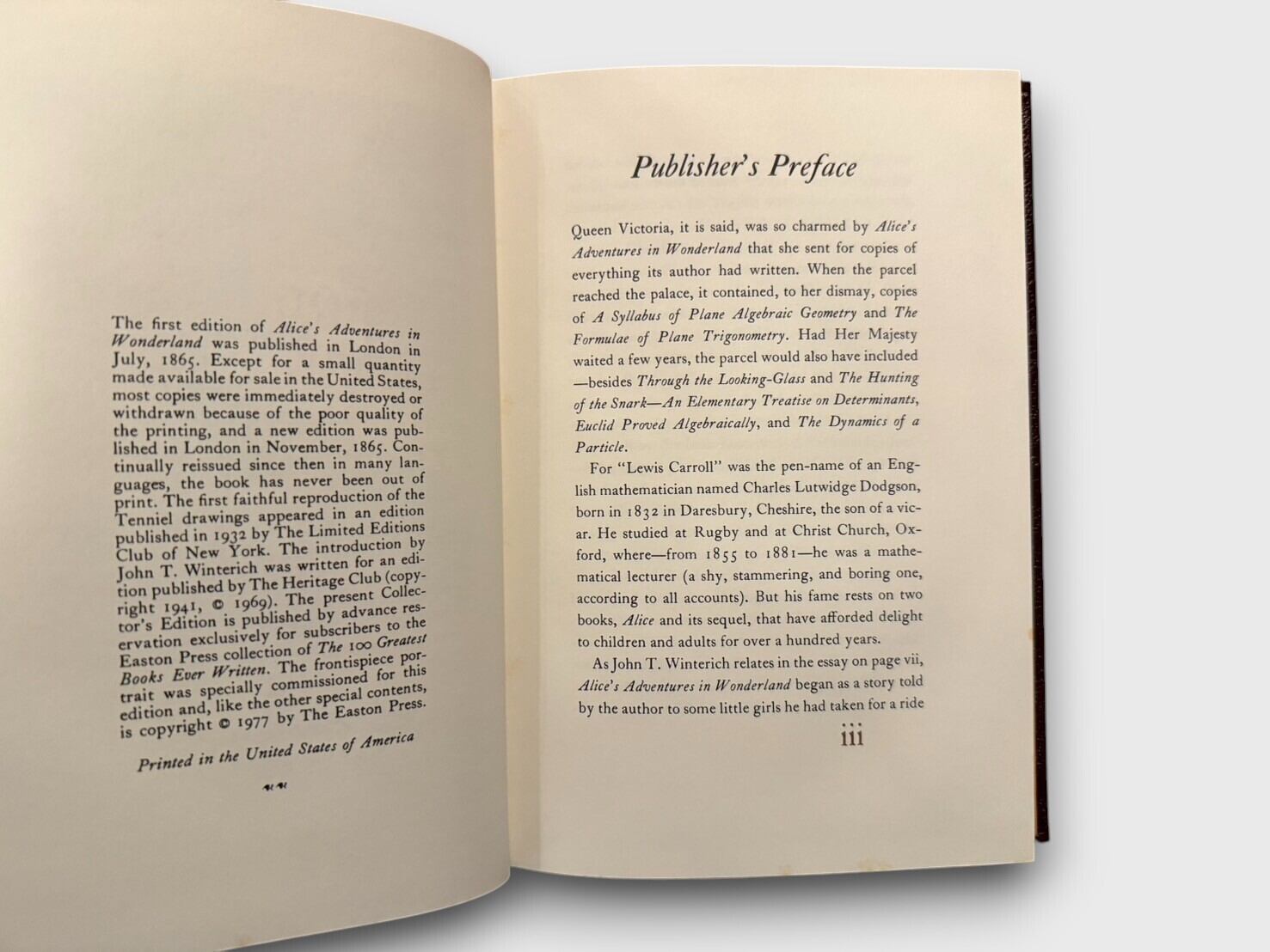 【SL645】【THE EASTON PRESS】 Alice's Adventures In Wonderland Illustrated by John Tenniel (The 100 Greatest Books Ever Written collector's Edition) (1977)/Lewis Carroll